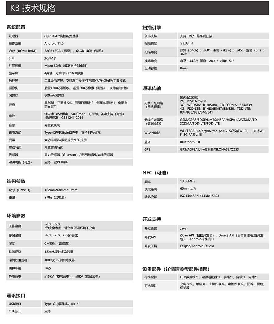 忙碌工作时,尤其是外出工作时,充换电都将耽误工作,K3 将电量升级至5000mAh,可有效减少充换电次数,让工作者能够专注业务,无需为续航担心。