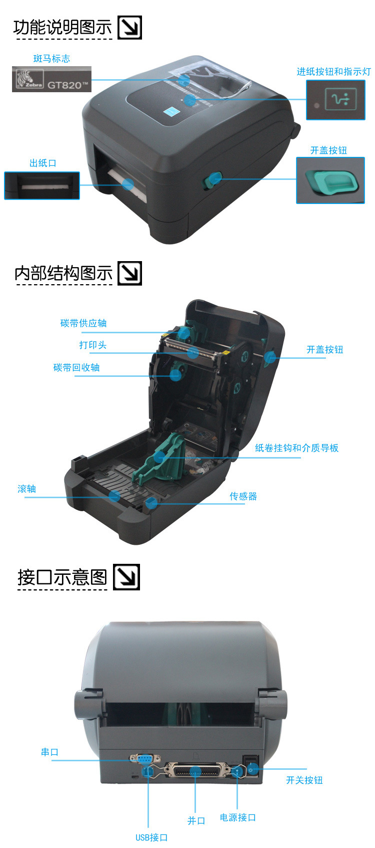 zebra 打印机 斑马GT820打印机 203DPI不干胶标签打印机 zebra GT800打印机升级版