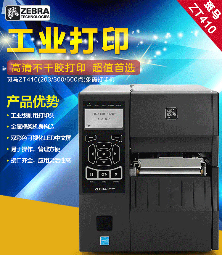 斑马打印机驱动下载Zebra ZT-410(300dpi)详细参数主要参数产品类型工商用打印机分辨率300dpi打印方式热敏或热转印打印速度15ips最大打印宽度4英寸最大打印长度450米重要参数产品类型:工商用打印机分辨率:300dpi打印速度:15ips打印方式:热敏或热转印内存:暂无数据通信接口:暂无数据产品尺寸: