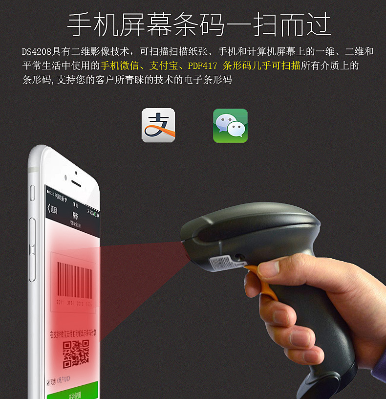 Symbol讯宝DS4208二维扫描枪手持式读码枪超市收银快递