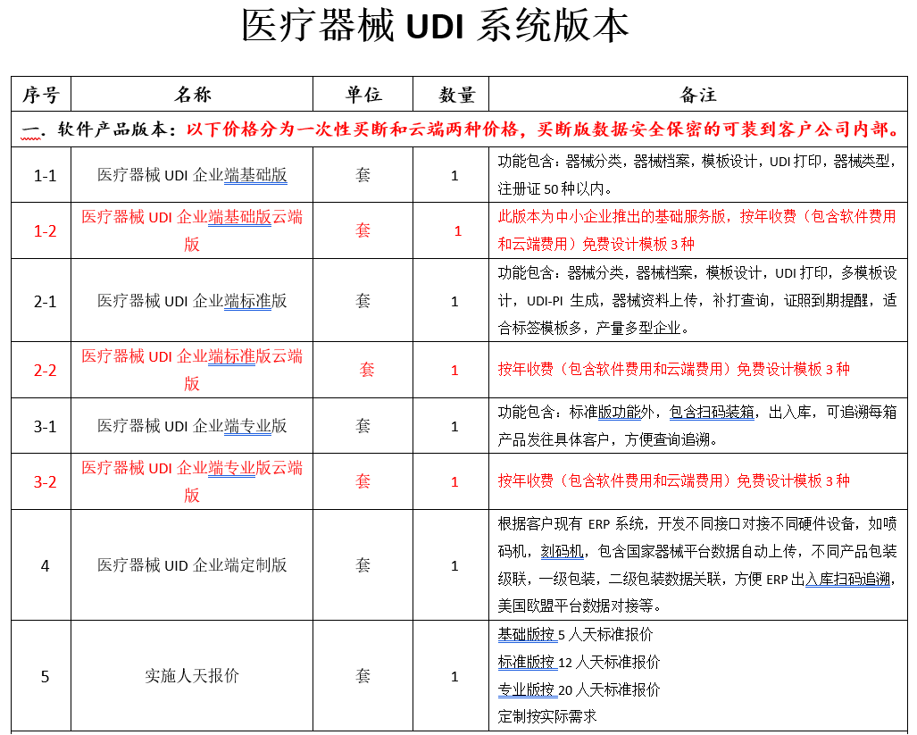 UDI管理系统功能模块